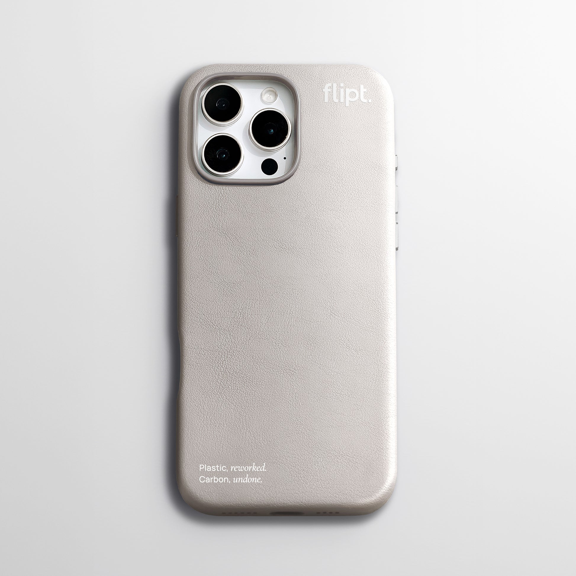 Plastic reworked. Carbon undone. is pressed into every case—not as decoration, but as a quiet statement you carry.